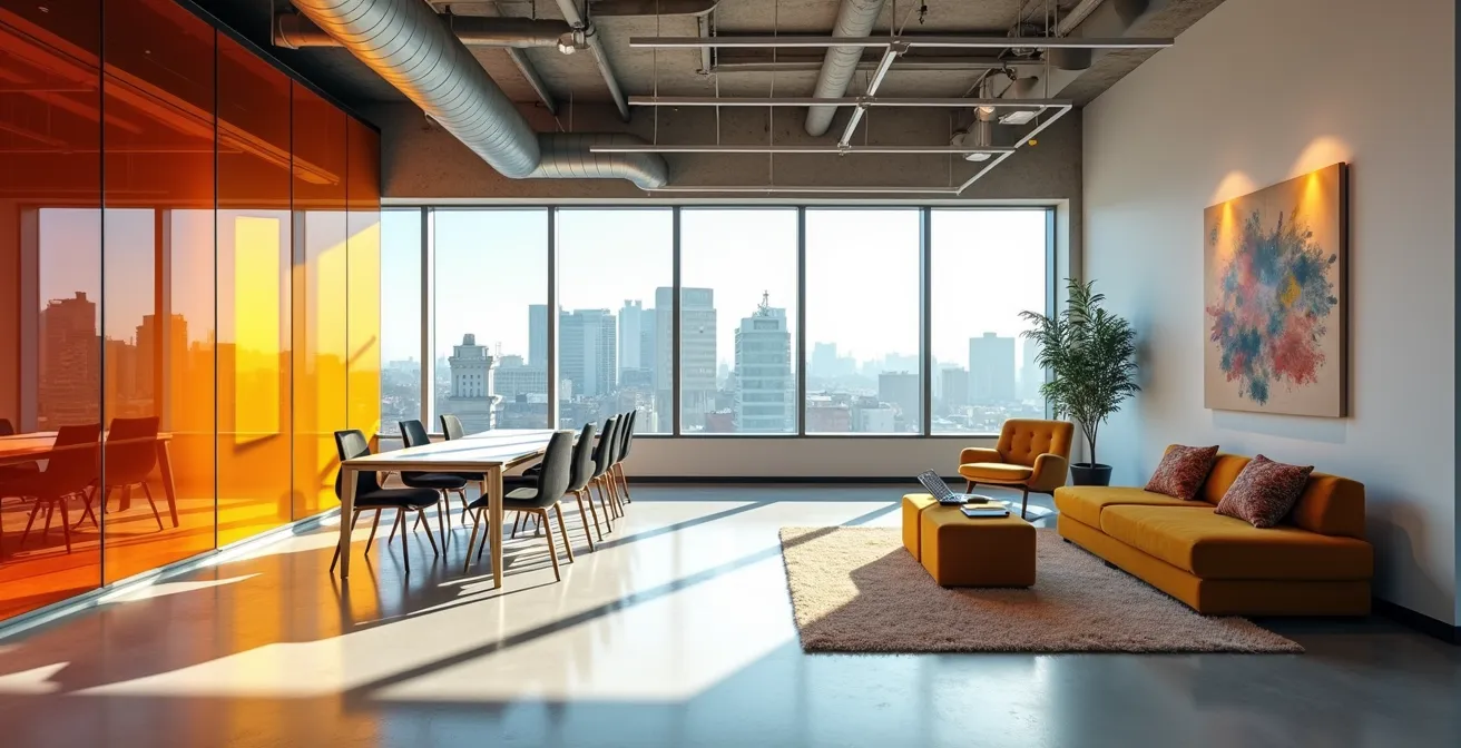 Ce n’est pas le logo en lui-même qui crée ce lien, mais la cohérence de l’univers visuel. Une palette de couleurs apaisante, des matériaux qui évoquent le savoir-faire de l’entreprise, des formes géométriques issues de la charte graphique utilisées dans le mobilier ou la moquette… Tous ces éléments, vus et revus, deviennent une seconde peau. Ils créent un « chez-soi » professionnel qui rassure et unifie. L’exemple de Google, souvent cité pour ses toboggans, est plus pertinent si on l’analyse sous cet angle : les espaces colorés et modulables ne sont pas là pour « faire joli », mais pour stimuler la créativité et les interactions informelles, qui sont au cœur de la culture d’innovation de l’entreprise. L’espace n’est pas une décoration, c’est une invitation à agir conformément aux valeurs de l’entreprise.